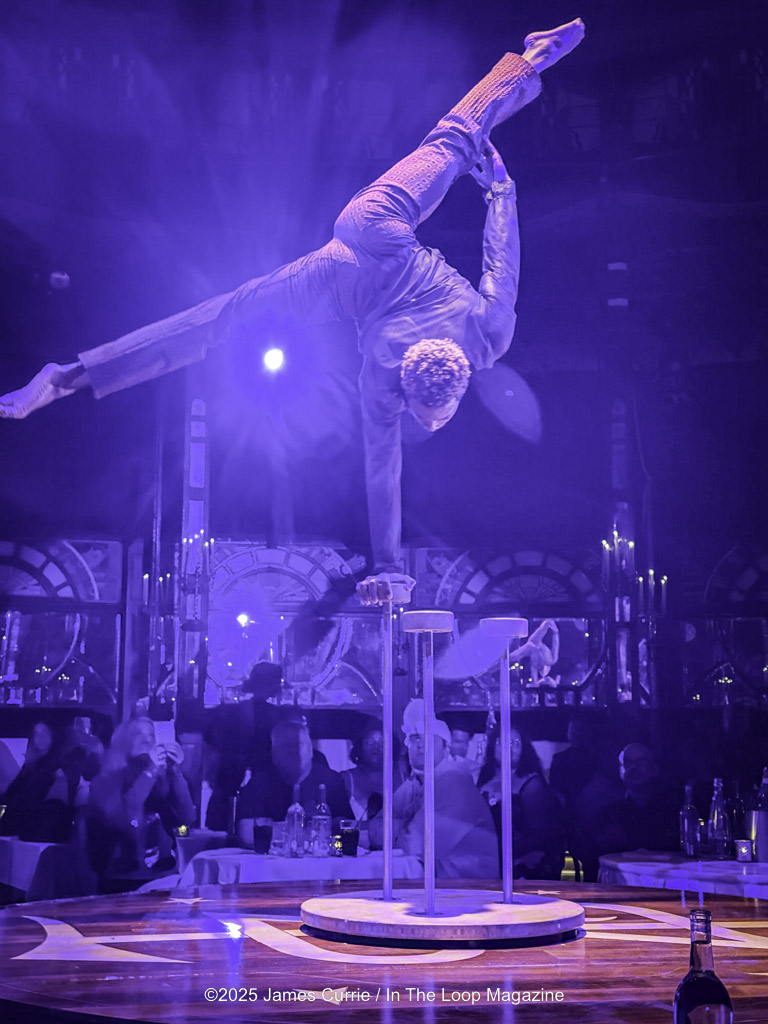 Located in the heart of the downtown theatre district on Randolph, the instant guests enter the velvet-draped spiegeltent, they’re transported into a world that feels both fantastical and familiar — a miniature society where music, motion, and mayhem collide. Beneath the glitter and laughter, Teatro Zinzanni pulses with an undercurrent of humanity, subtly echoing the complexities of our own times: the tension between classes, the resilience of the working people, and the shared longing for belonging in a divided world.
