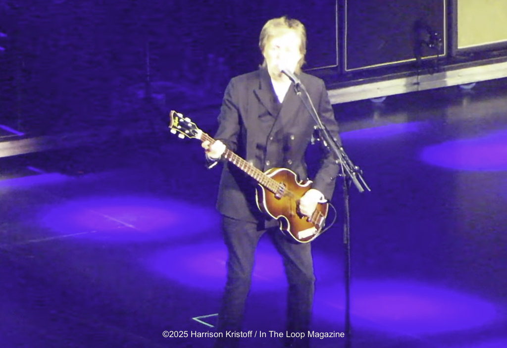 Then McCartney appeared. Dressed in a classic black, slim-cut suit that seemed to defy time, he waved his way across the stage with the same eager warmth he’s carried since the early ’60s. His trusty Höfner 500/1 Violin Bass hung from his shoulder like an old friend. “Hello Chicago, it’s great to be back here.” the former Beatle proclaimed. “We’ve got some old songs, some new songs, some middling songs. I think we are going to have a good time here tonight.” As the band took position, McCartney stepped to the mic and in one powerful stride launched into a blazing rendition of “Help!” a jolt that electrified the entire arena and set the tone for the marathon to come.