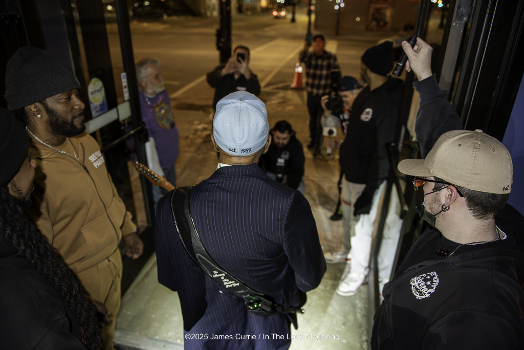 Buddy made the room his own, as he always does. He stepped off the stage and wandered through the crowd, guitar slung, strings crying inches from fans’ faces. He paused mid-song to shake a hand, to say hello to a longtime friend Chicago blues radio legend Tom Marker (who introduced Buddy’s set), to soulfully grin at someone who’d clearly waited decades for this moment. At one point, Buddy walked right out the front door, guitar still wailing as he played to the city itself, Chicago, catching the blues on a cold January sidewalk.