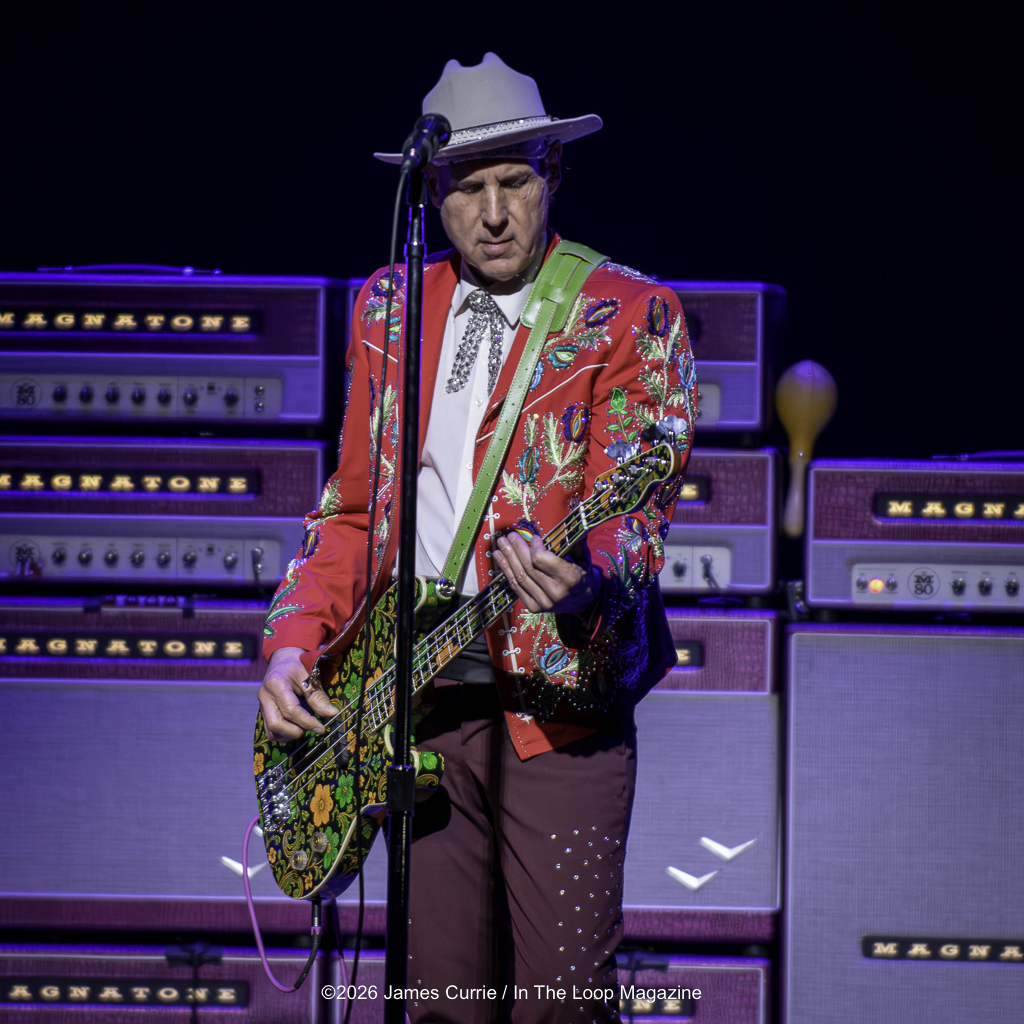 Gibbons and company hit the stage dressed like Texas rock ’n’ roll royalty, cowboy hats and draped in bright red, rhinestone studded suits that sparkled under the Arcada lights. These weren’t costumes, they were statements. Intricately stitched with weed leaves, roses, and skeletons across the front, the suits felt equal parts outlaw, blues mystic, and border-town swagger. The kind of custom threads that don’t just turn heads, they tell stories. Between the tone, the grooves, the stories, and those suits, the message was clear: this wasn’t a nostalgia act. This was Texas pride on full display, loud, unapologetic, and still dripping in style.