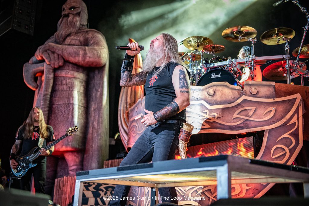 Opening with the thunderous “Guardians of Asgaard,” the band had fists in the air and heads banging by the first chorus. They followed with fan-favorite “Shield Wall” and the ferocious “Deceiver of the Gods,” both delivered with battlefield fervor. Frontman Johan Hegg, with his signature growl and massive presence, commanded the crowd like a general rallying troops. “Raise your horns!” he shouted before launching into, of course, “Raise Your Horns,” prompting hundreds of beer cups and a few viking drinking horns to lift skyward in salute. Their set ended with “Twilight of the Thunder God,” a fitting climax as lightning crackled faintly in the distance, remnants of the storm that had passed.
