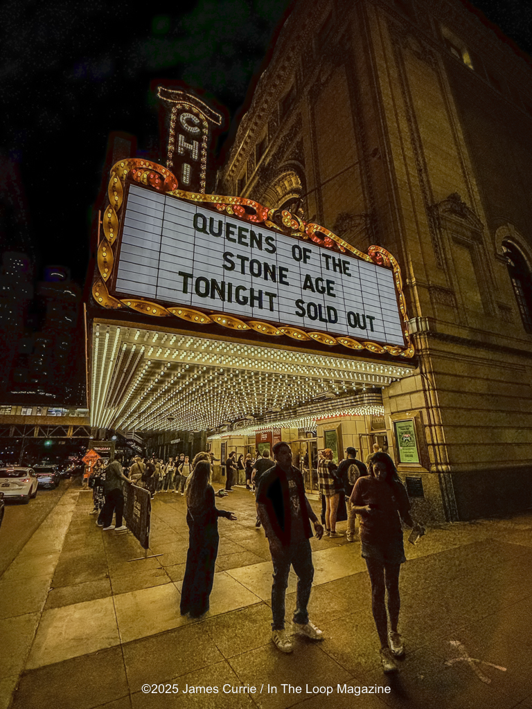 Queens of the Stone Age aren’t a band that typically deals in subtlety. For the past two decades, they’ve staked their reputation on bone-crushing riffs, swaggering grooves, and the kind of desert rock danger that makes you feel like you’re one speeding ticket away from damnation. But on opening night of their Catacombs Tour 2025 at The Chicago Theatre, Josh Homme and company stripped back the desert dust and went subterranean—emerging with a show that felt more like a twisted Vegas lounge act staged inside a haunted cathedral. Tonight, Queens of the Stone Age flip the script on what a rock spectacle can be and turned Chicago Theatre into a haunted lounge.