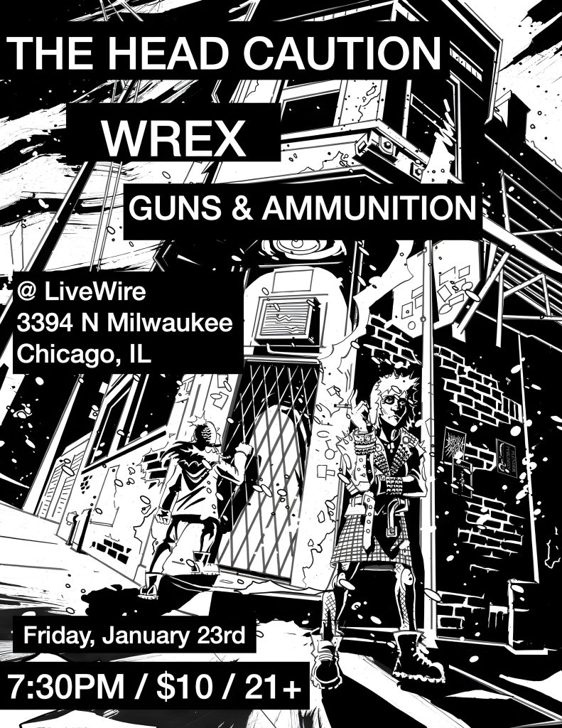WREX is a name that should be familiar to anyone in the southside DIY scene. Hailing from the historic Bridgeport neighborhood, WREX are known for their experimental sound and rowdy house shows. Fans have described them as “blackened trip-hop hardcore.” Okay, one fan has described them that way. So come on out to figure out what the hell that means.